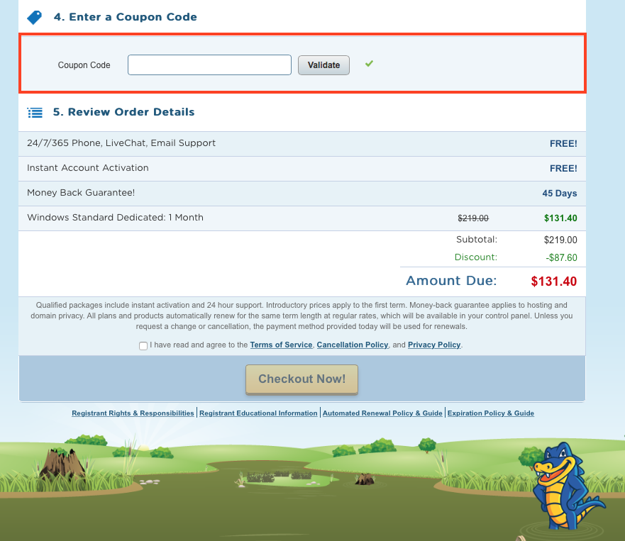 En Rebájalo.es no tienes que inscribirte al portal y mucho menos pagar para disfrutar de todos los beneficios que nuestros cupones de descuento tienen para ti. Nosotros queremos que vivas esta experiencia del ahorro libremente y con mucho éxito. Por eso, lo único que tienes que hacer es canjear los cupones y no será ningún problema porque nosotros mismos te diremos cómo hacerlo. Con respecto al Cupón Hostgator, dale clic al enlace donde dice “ver cupón y despliega así un código alfanumérico que debes guardar bien para utilizarlo más adelante. A continuación, entra a www.hostgator.mx y selecciona el plan de hosting de tu preferencia, verifique la disponibilidad del dominio que desee y finalmente, cuando vaya a formalizar el pago, agrega el código alfanumérico en el espacio correspondiente. De esta forma ya estarás aplicando el cupón de descuento. No olvides que cuentas con un extraordinario equipo de servicio al cliente en Rebajalo.es, que te brindará toda la ayuda que necesites en caso de que se te presente algún problema siguiendo este proceso.